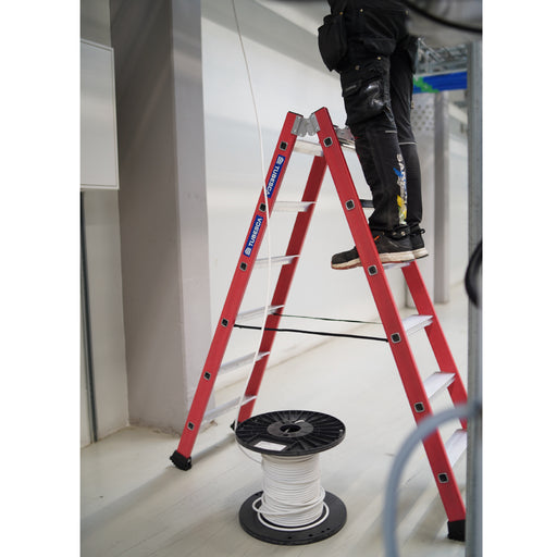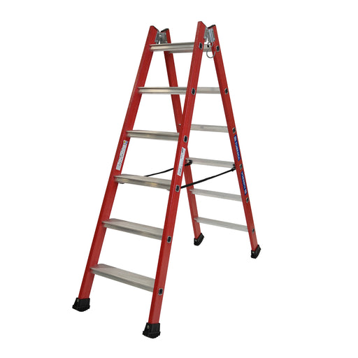 Klarar upp till 10000V & EN 131.10 års åldersbeständighet.Finns i 5 längder: 1,1 - 3,1 m.Tillverkad i Tyskland.Original pris 6 337,00 kr - Original pris 12 673,00 krOriginal pris6 337,00 kr 12 673,00 kr6 337,00 kr - 12 673,00 krNuvarande pris 6 337,00 kr| /Fristående dubbelsidig trappstege tillverkad av förstärkt glasfiber (GFRP). 80 mm djupa, räfflade aluminiumsteg. Rejäl infästning mellan steg och ...