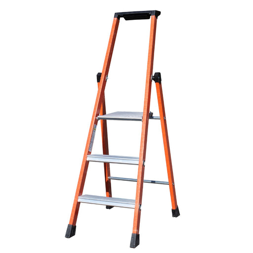 EN 131, Testad upp till 1 000 Volt.Plattformsstorlek: 650 x 600 mm.Finns i 7 plattformshöjder: 1,17-1,87 m.Handledare & den översta verktygshyllan är i aluminium.Original pris 47 604,00 kr - Original pris 53 085,00 krOriginal pris47 604,00 kr 53 085,00 kr47 604,00 kr - 53 085,00 krNuvarande pris 47 604,00 kr| /En arbetsplattform i glasfiber som lämplig för arbete nära eller på spänningsförande delar. Testad upp till 1 000 Volt enligt DIN EN 61478:2002, e...