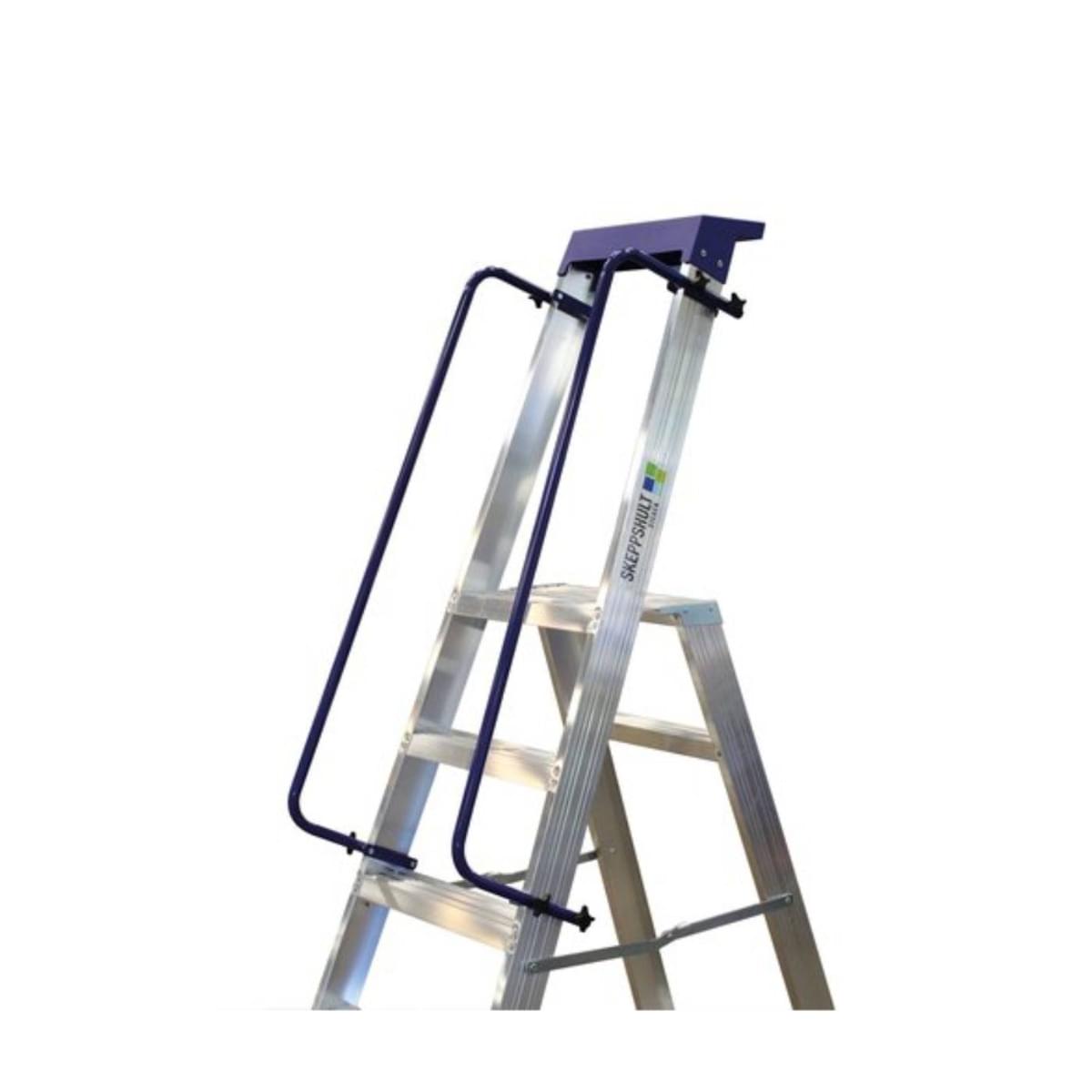 - Stegbreddare art.nr. 204-9, enligt arbetsmiljöverket ska stegar med plattformshjöd över 2 m stagas eller förankras ned stegbreddare - Se Tillbehör/Reservdelar nedan!
